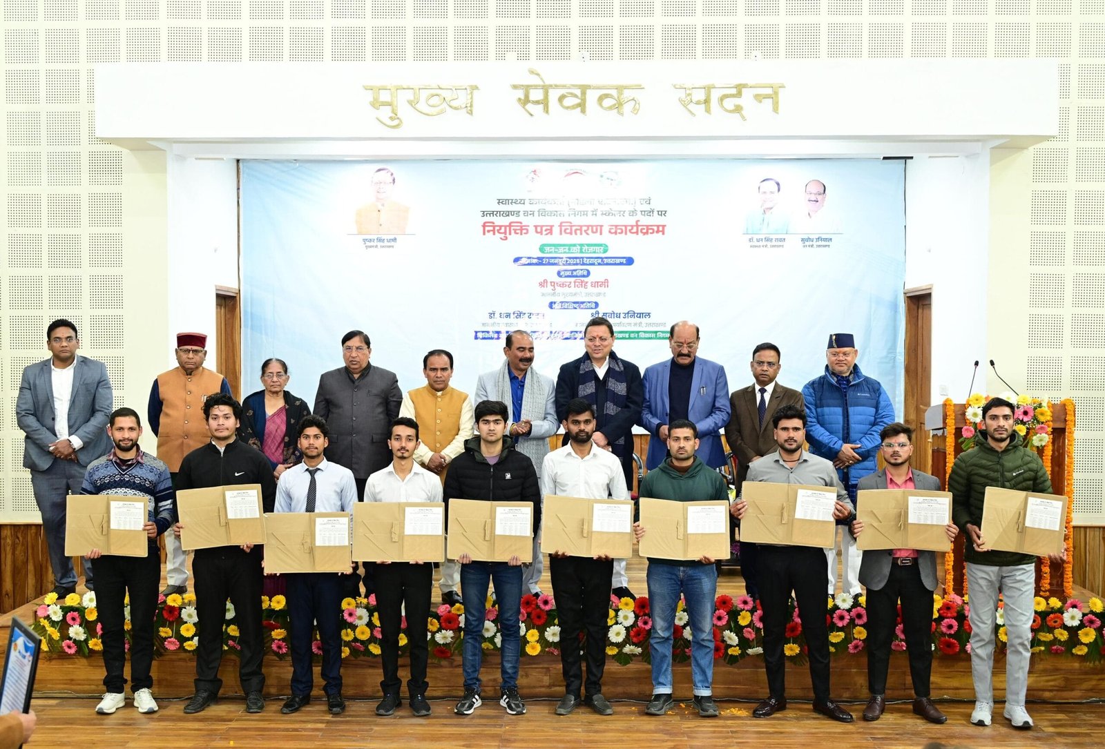 मुख्यमंत्री पुष्कर सिंह धामी ने सोमवार को मुख्य सेवक सदन, देहरादून में आयोजित कार्यक्रम में प्रतिभाग करते हुए कुल 530 चयनित अभ्यर्थियों को नियुक्ति पत्र वितरित किए। मुख्यमंत्री ने 352 स्वास्थ्य कार्यकर्ता (महिला ए.एन.एम) एवं उत्तराखण्ड वन विकास निगम के 178 स्केलर के पदों पर चयनित अभ्यर्थियों को नियुक्ति पत्र वितरित किए।