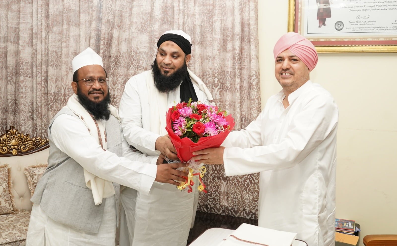 दारुल उलुम वक्फ बोर्ड देवबंद के प्रतिनिधिमण्डल ने शनिवार को श्री दरबार साहिब में श्रीमहंत देवेन्द्र दास जी महाराज से शिष्टाचार भेंट की प्रतिनिधिमंण्डल में मुफ्ती मुहम्मद एहसान चीफ ओरगनाइजर आॅफ मुफ्तीज़ आॅल ओवर इण्डिया, चीफ मुफ्ती दारुल उलुम देवबंद, मुफ्ती गुफरान, प्रोफेसर जमियत-उल-उलूम देवबंद, कारी साजिद साहब (पूर्व मंत्री देवबंद, उत्तर प्रदेश सरकार), मलिक मौजान, सामाजिक कार्यकर्ता देवबंद, मुफ्ती रहीश एहमद कासमी शहर मुफ्ति देहरादून एवम् चीफ इमाम उत्तराखण्ड व सदर जमित ओलामा हिन्द प्रबन्धक मदरसा जामियतुस सलाम ,मौलाना तौहीद, मुजफ्फरनगर ने श्री दरबार साहिब में अमन-ओ- अमान, सभी की तरक्की और नेक राह पर चलने की दुआ मांगी। देवबंद से आए प्रतिनिधिमण्डल ने श्री दरबार साहिब के सज्जादे गद्दी नशीन श्रीमहंत देवेन्द्र दास जी महाराज को दारुल उलूम देवबंद आने का निमंत्रण दिया।
