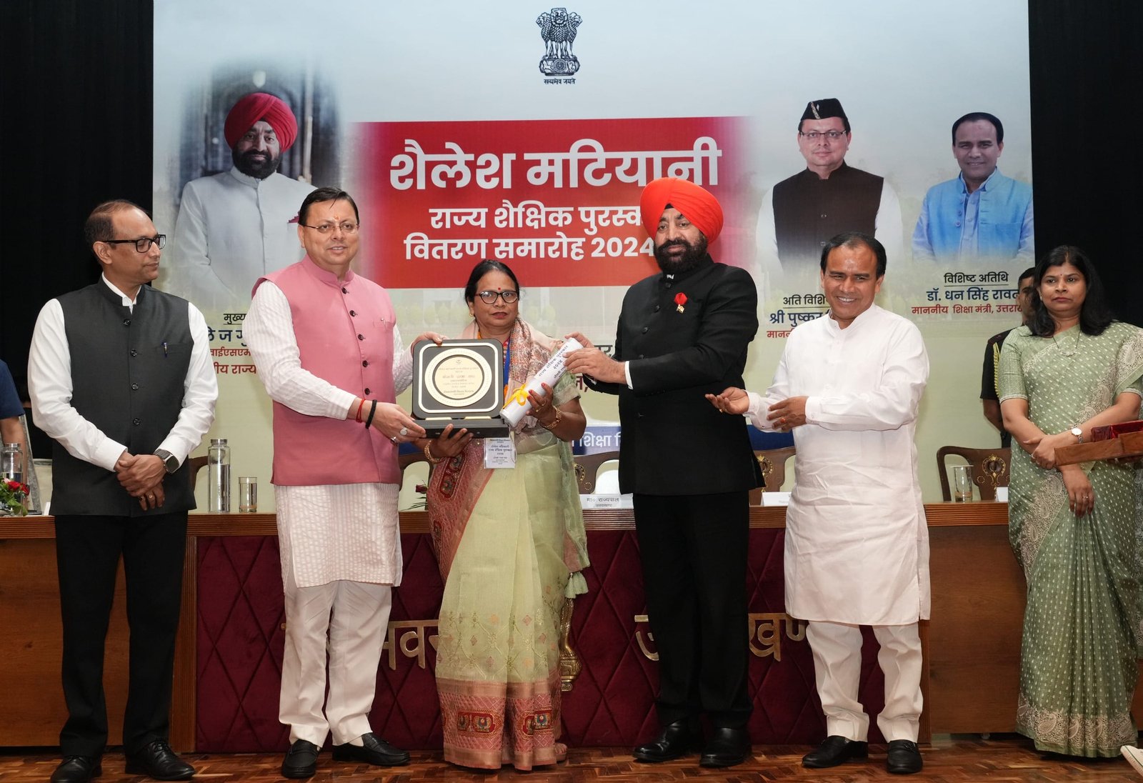शिक्षक दिवस के अवसर पर शुक्रवार को राजभवन में ‘‘शैलेश मटियानी राज्य शैक्षिक पुरस्कार’’ सम्मान समारोह आयोजित हुआ। समारोह में राज्यपाल लेफ्टिनेंट जनरल गुरमीत सिंह (से नि), मुख्यमंत्री श्री पुष्कर सिंह धामी और शिक्षा मंत्री डॉ. धन सिंह रावत ने वर्ष-2024 में शैलेश मटियानी राज्य शैक्षिक पुरस्कारों के लिए चयनित 16 शिक्षक एवं शिक्षिकाओं को सम्मानित किया। वर्ष-2024 में चयनित 09 प्रारम्भिक शिक्षक, 05 माध्यमिक शिक्षक, 01 शिक्षक प्रशिक्षक एवं 01 संस्कृत शिक्षक को यह सम्मान प्रदान किया गया है। (सूची संलग्न)