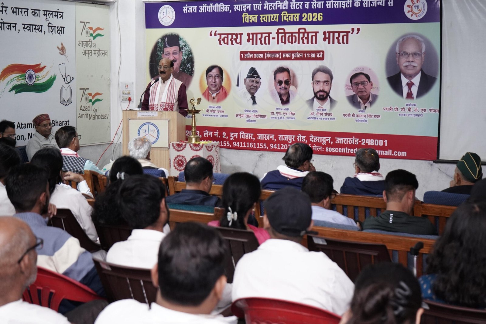विश्व स्वास्थ्य दिवस के अवसर पर दून विहार, जाखन में संजय ऑर्थोपीडिक, स्पाइन एवं मैटरनिटी सेंटर एवं सेवा सोसाइटी द्वारा आयोजित “स्वस्थ भारत – विकसित भारत” कार्यक्रम में प्रदेश के स्वास्थ्य मंत्री सुबोध उनियाल बतौर मुख्य अतिथि सम्मिलित हुए और कार्यक्रम का शुभारंभ किया।