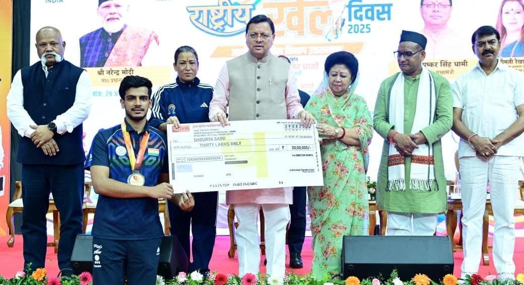 शुक्रवार को मेजर ध्यानचंद जयंती के अवसर पर बहुउद्देश्यी क्रीड़ा हाल परेड ग्राउंड में आयोजित राष्ट्रीय खेल दिवस – 2025, समारोह को संबोधित करते हुए, मुख्यमंत्री पुष्कर सिंह धामी ने कहा कि खेल और खेल भावना समाज को ऊर्जा, अनुशासन और प्रेरणा प्रदान करती है। उन्होंने कहा कि मेजर ध्यानचंद ने अपनी स्टिक के जादू से पूरी दुनिया को भारत की खेल शक्ति से परिचित कराया। उन्होंने हिटलर तक को ये बता दिया कि देश भक्ति आखिर क्या होती है। उन्हीं के आदर्शों पर चलकर आज प्रधानमंत्री नरेंद्र मोदी के नेतृत्व में हमारा देश भी एक वैश्विक खेल शक्ति बन रहा है, इसमें उत्तराखंड भी अपनी भूमिका निभाने के लिए कमर कस चुका है। उन्होंने कहा कि प्रधानमंत्री “खेलो इंडिया” और “फिट इंडिया मूवमेंट” जैसे कार्यक्रमों के माध्यम से देश में खेल संस्कृति को प्रोत्साहित करने का प्रयास कर रहे हैं। आज हमारे खिलाड़ी केवल किसी प्रतियोगिता में भाग लेने के लिए ही नहीं खेलते बल्कि जीतने और तिरंगा लहराने के संकल्प के साथ मैदान में उतरते हैं। हाल के वर्षों के उदाहरण देखें तो जहां, 2020 के टोक्यो ओलंपिक में भाला फेंक में नीरज चोपड़ा ने स्वर्ण पदक जीतकर इतिहास रचा वहीं पुरुष हॉकी टीम ने 41 वर्षों बाद कांस्य पदक हासिल किया। इसी तरह पेरिस ओलंपिक में नीरज चोपड़ा ने रजत पदक, मनु भाकर ने दो कांस्य पदक, स्वप्निल कुसले व अमन सेहरावत ने एक- एक कांस्य पदक जीतकर और पुरुष हॉकी टीम ने लगातार अपना दूसरा कांस्य पदक जीतकर भारत का गौरव बढ़ाया। हाल ही में हुई एशियाई एथलेटिक्स चैम्पियनशिप में ज्योति याराज्जी, गुलवीर सिंह और अविनाश सबले ने स्वर्ण पदक जीतकर भारत का परचम बुलंद किया है। प्रधानमंत्री नरेंद्र मोदी ने खेल बजट तीन गुना बढ़ा दिया है।